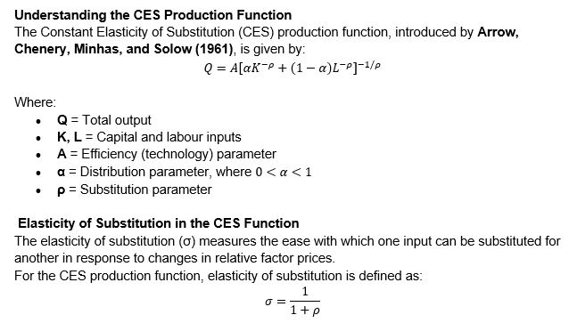 Conclusion Since the CES production function encompasses all possible degrees of substitutability āranging from no substitution to perfect substitutionāthe elasticity of substitution can lie anywhere between 0 and infinity. Therefore, the correct range is: