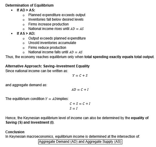 Both the AD–AS approach and the Saving–Investment approach lead to the same equilibrium level of national income.