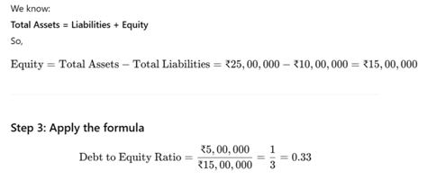 Liabilities of ₹10,00,000. What is its Debt to Equity Ratio, if long-term debt is ₹5,00,000?Solution