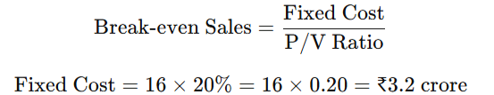 sales are ₹16 crore. What is the fixed cost of the company?Solution