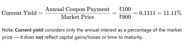 coupon of ₹100. If the bond is currently trading in the market at ₹900, what is its current yield?Solution