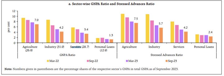 Industry III. Services IV. Personal loans Arrange the following sectors in ascending order based on GNPA.Solution