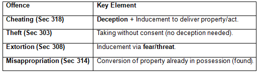 - "Misappropriates lost property only" : This is Dishonest Misappropriation (Section 314 BNS). It lacks the element of "deception" required for cheating.