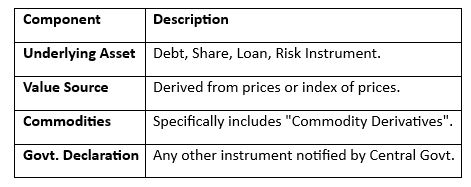 Answer: D. Any contract for the delivery of goods where delivery is taken within 11 days. A contract for the actual delivery of goods (spot delivery or ready delivery contracts) is distinct from a derivative contract. Derivatives are financial contracts whose value is derived from an underly2ing asset, and they are often settled by offsetting positions rather than physical delivery (though physical delivery3 is possible in some commodity derivatives). The specific exclusion of "delivery within 11 days" is not part of the definition of a derivative but rather relates to the definition of a "Spot Delivery Contract" (Section 2(i)), which serves a different purpose in the Act. 3. Key Concept: The SCRA governs contracts in securities. Derivatives are treated as securities. Pure trade contracts for goods (spot delivery) are generally outside the purview of "derivatives" trading unless they are specific commodity derivatives regulated under the Act. Summary Table: Section 2(ac) Includes