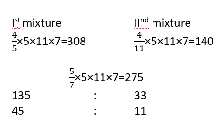 respectively, in the ratio 1:4 and 7:4 in what ratio should the contents be mixed so that the ratio of milk to water in the final mixture is 2:5.Solution