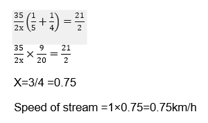 hours 30 minutes. He found that he could row 5 km with the stream at the same time as he could go 4km against the stream to find the rate of flow of the stream.Solution