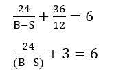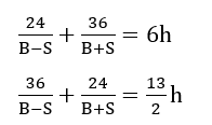 Let the speed of boat in still water =B and speed of stream =S ATQ- In these types of questions, make factor of 24 and 36 and choose the common values which satisfy the above equations. 24=2,3,4,6,8,12 36=3,4,6,9,12,18 Choose the greatest common factor. Put this value in equation (1)