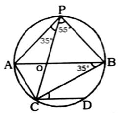 Here, ∠APC = 90° (∵ angle in semicircle is 90°) Now, ∠APC = 90° - 55° = 35° and, ∠APC = ∠ABC Then, ∠ABC = ∠BCD = 35°