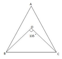 If O is the orthocentre of ΔABC, then ∠ BOC + ∠ BAC = 180 0 or 1350 + ∠ BAC = 180 0 or ∠ BAC = 180 0 - 1350 = 450