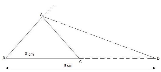 Here CD = BD- BC = 5 - 3 = 2cm, By External angle bisector theorem, AB: AC = BD:CD = 3:2