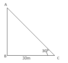 The height of the tree before it broke =AB+AC trigonometry (tan) = opposite/adjacent): tan 30Β° = AB/30 Since tan 30Β° = 1/β3 1 /β3 =AB/30 AB=30/β3 =10β3m AB = 10β3 Cos 30Β° =BC/AC β3 /2 =30 /AC AC =60 /β3 AC =20β3. Now the height of the tree=AB+AC =10β3 +20β3 =30β3