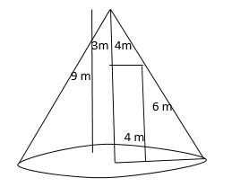 6m height is placed 4 m away from its centre such that it touches the surface. Find the slant height of the tent from the base to the point where the pole touches it?Solution