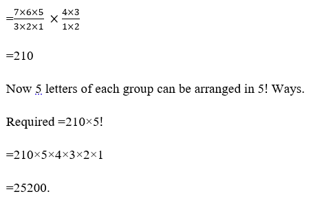 4 Number of selections = selections of 3 consonants out of 7Ă—selection of 2 vowels out of 4 =7C3 Ă— 4 C2