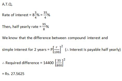 at the rate of 8(3/4)% per annum for compound interest and simple interest respectively. What is the difference of interests received from two persons in a year, if interest is payable half yearly.Solution