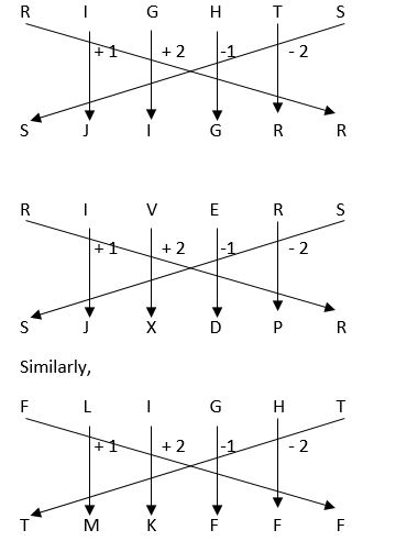 âSJIGRRâ and âRIVERSâ is coded as âSJXDPRâ then âFLIGHTâ is coded as in the same code language?Solution