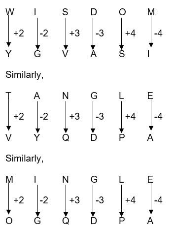‘YGVASI’ and ‘TANGLE’ is coded as ‘VYQDPA’, then 'SINGLE' is coded as ____ in the same code language.Solution