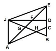 Triangle: AGH, AJG, AJH, AEC, AEJ, BHC, BJD, BJE, EFJ, EFD, EJD, EJG, EBG, JGF and AJF. So, there are fifteen triangles in the given figure.Â