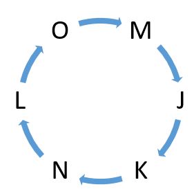numbered I, II and III given below it. You have to decide whether the data provided in the statements are sufficient to answer the question. Read all the statements and give answer. Six persons J, K, L, M, N and O are sitting around a circular table facing towards the centre. What is the position of J with respect to N? Statement I: M sits third to the left of N, who sits second to the right of O. Statement II: M is sitting second to the left of L, who sits two places away from K. Statement III: O and N are immediate neighbors of L.Solution