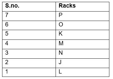 numbered I and II given below it. You have to decide whether the data provided in the statements are sufficient to answer the question. Read all the statements and answer the question. There are seven racks J, K, L, M, N, O, and P one above the other in a stack such that the bottommost shelf is numbered as 1, the shelf immediately above it is numbered as 2 and so on however not necessarily in the same order. Which shelf is second shelf from the top? Statement I: J is three racks below K, which is a prime numbered shelf. More than one shelf is between J and P. M is two racks below O. N is above L but below O. Statement II: Only one shelf is between P and K. K is three racks above J, which is a prime numbered shelf. N is one shelf below M. Only one shelf is between M and O.Solution