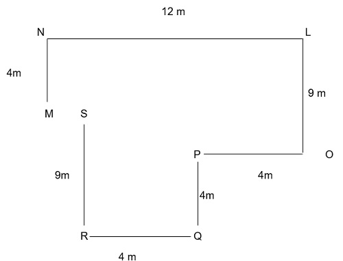 Shortest distance between N and O = √9² + 12² = √81 + 144 = √225 = 15 m.