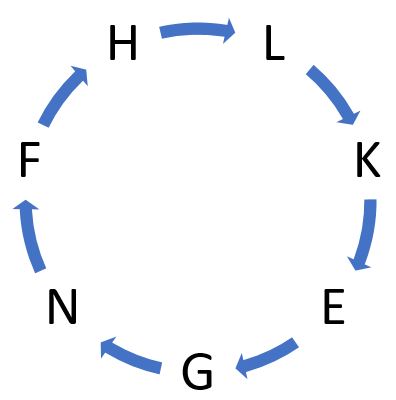 E, F, G, H, K, L and N are sitting around a circular