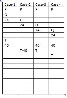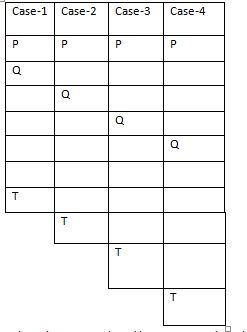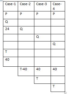 Four boxes are placed between Q and T which is placed below box R. Not more than four boxes are placed above Q. The Box P is placed at topmost position Three boxes are placed between T and the box which has 24pens which is placed above T. There are six boxes are placed between P and the box which has 40pens..