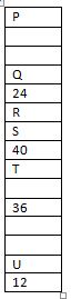 Study the following information carefully and answer the below questions. Certain numbers of boxes are placed in a stack one above another. No two boxes are placed in a same shelf. Each boxes has different number of Pens. Four boxes are placed between Q and T which is placed below box R. Not more than four boxes are placed above Q. Three boxes are placed between T and the box which has 24pens which is placed above T. The Box P is placed at topmost position. There are six boxes are placed between P and the box which has 40pens.The number of boxes placed between box Q and the box which has 40pens is half of the number of boxes placed below box T. Box R is placed just above box S. Six Boxes are placed between S and U which is placed three position below the box which has 36pens. Box U is placed second position from bottom. Eight boxes are placed between R and the box which has 12pens.Solution