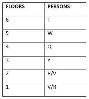 Six persons W, Y, V, T, R, and Q live in a six- floor
