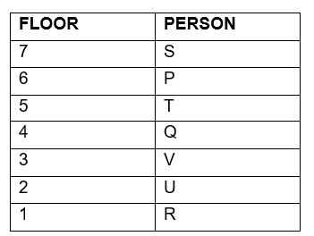 different floors of a building such that bottommost floor is numbered as 1, the floor immediately above it is numbered as 2 and so on. S lives on the topmost floor. T lives above U. Only two persons live between T and U. U lives immediately above R. P lives two floors above Q. Who among the following lives on the 4 th floor?Solution