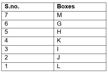 Seven boxes G, H, I, J, K, L and M are kept one above