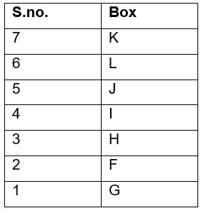 Seven boxes, F, G, H, I, J, K, and L, are kept one