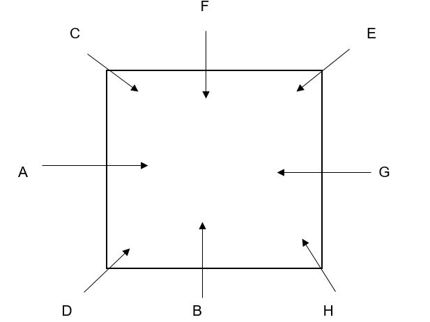 a square table facing towards the centre (not necessarily in the same order). Four boys are sitting at the corners and four boys are sitting in the middle of the sides. D is the immediate neighbour of A and B and he is sitting at a corner. G is the immediate neighbour of H and E. F is the sitting in the middle of the side. A is not sitting opposite to F. H is towards the immediate right of B. Who is sitting diagonally opposite to C?Solution
