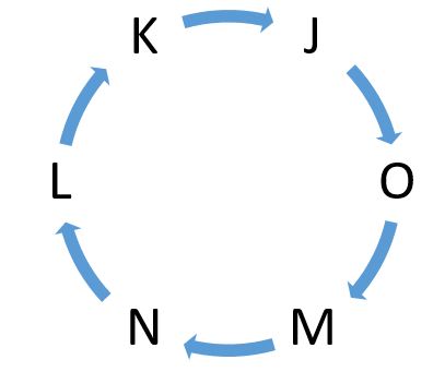 Six persons J, K, L, M, N, and O are sitting around a