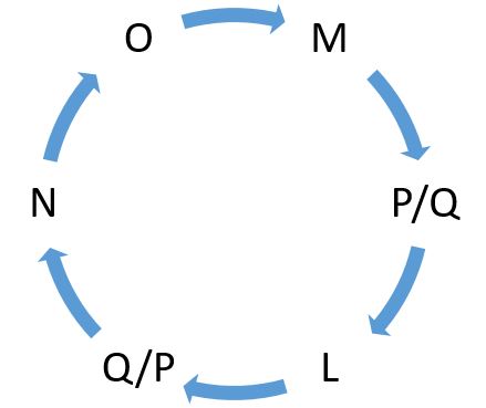 the circular table facing towards the centre. L sits second to the right of N. One person sit between M and L. O is not adjacent to L. Who is sitting to the immediate left of N?Solution