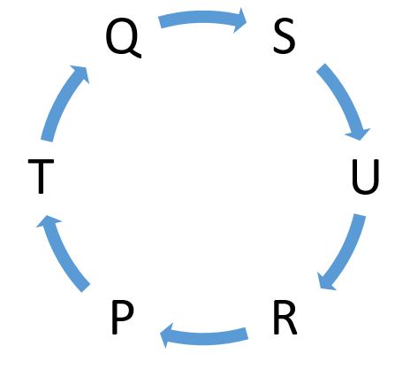 table. All of them face towards the centre. Only two persons sit between T and U. U sits immediate right of R. Q sits second to the left of P. Who among the following sits third to the right of S?ÂSolution