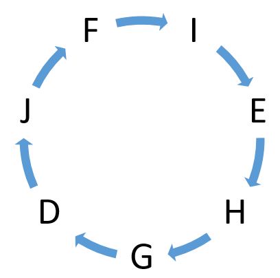 circular table not necessarily in the same order. All of them face inside. J sits third to the left of H. Two persons sit between H and F. I sits adjacent to F. G sits second to the left of E. Who among the following sits third to the left of D?Solution