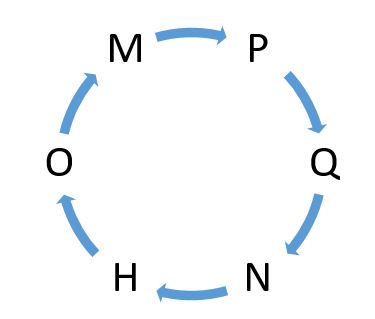 circular table facing towards the centre. M is sitting opposite to N. H is not sitting adjacent to M. P is sitting opposite to H. Number of people sitting between N and P is equal to the number of people sitting between M and Q. O does not sit immediate left of M. Who is sitting immediate right of O?Solution