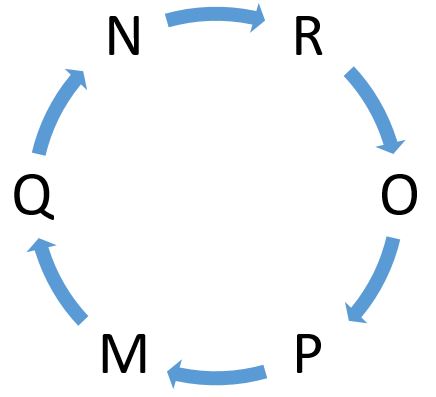 Six people, M, N, O, P, Q and R are sitting around a