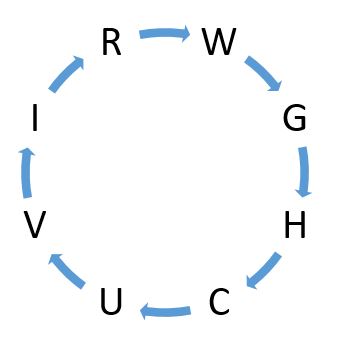 the centre. W is sitting between R and G. G is sitting third to the right of U. C sits between U and H, who is sitting immediate left of G. I sits between R and V. Who is sitting in front of H?Solution