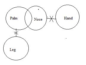 I. Yes, some part of nose which is palm is not leg. II. Yes, some part of palm which is nose is not hand.