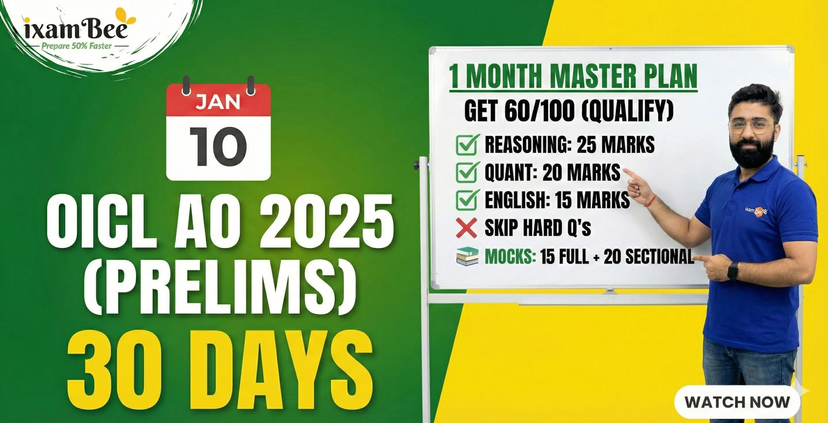 tudy plan: https://www.ixambee.com/live-class-session-pdfs/oicl-ao-generalists-2025-complete-study-plan OICL AO Prelims Previous year paper: https://www.ixambee.com/previous-year-question-paper/oicl-ao OICL AO Prelims Mock Test : https://www.ixambee.com/free-mock-tests/oicl-ao-prelims